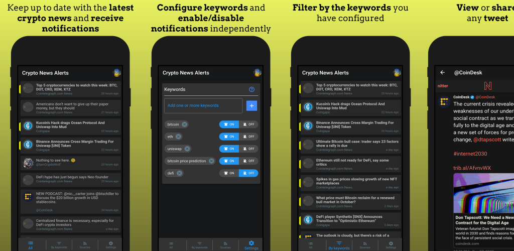 Stay informed with the best premium crypto news on the planet. They are primarily dedicated to top crypto news regarding icos and all the necessary information regarding it. I have tried some apps that claim to do this but i watch the price go past the alert and nothing. Coinmarketcap (cryptocurrency market cap info). Explore tweets of crypto news alerts@cryptonewsyes on twitter. Let's say that you would like to receive an alert when the bitcoin price reaches $10,000. Stay informed with the best premium crypto news on the planet. Configure instant alerts for currencies of your high interest and receive news immediately in your email or get notified on mobile. Stay informed with the best premium crypto news on the planet. Crypto news flash provides you with the latest news and informative content about bitcoin, ethereum, xrp, litecoin, tron, eos, bch and many more altcoins. Crypto market alerts, technical indicators, crypto trends, events, news & more! Find the latest cryptocurrency news, updates, values, prices, and more related to bitcoin, etherium, litecoin, zcash, dash, ripple and other cryptocurrencies with yahoo finance's crypto topic page. Crypto podcaster | #bitcoin disciple | visit youtube channel for 'daily' show.